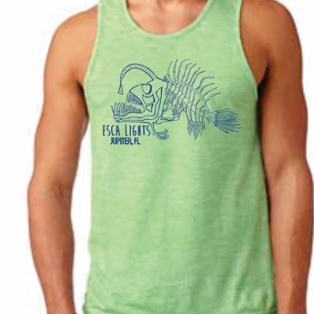 Still wonder where we came up with the ESCA name? Check out the Esca Tank. The Esca is the little light that dangles off the angler fish. The light lures its prey in close enough so it can attack. Don't worry though, this shirt doesn't bite it only attracts attention because of the groovy nature of its artwork.