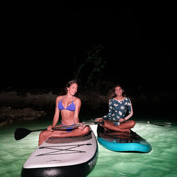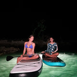 Several customers who run 60 minute paddle tours successfully use the high setting, which only lasts approx 40 minutes. To do around this, the paddle tour begins without the LITRAs on. It offers the Customer a chance to get out on the water, under the full moon naturally. Once everyone is safely out on the water and their eyes are adjusted to the dark, the instructor/lifeguard will have everyone paddle by. One at a time, they can turn on the Customers LITRAs and it provides a great wow factor that helps end the paddle tour on a high note. Did we mention this is a great photo opportunity for all the smiling faces?